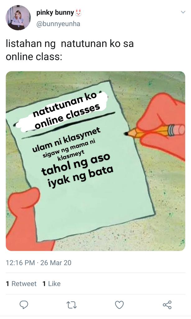 𝓱𝓪𝔃𝓮 Ia Until Further Notice Pa Twitter Gt 3 1 Lt Anong Natutunan Mo Sa Online Class Https T Co O9kbpen4mf Twitter