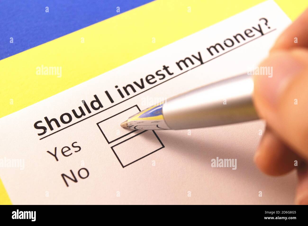 Should I Invest My Money Yes Or No Stock Photo Alamy